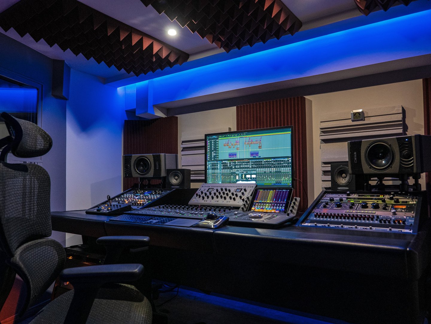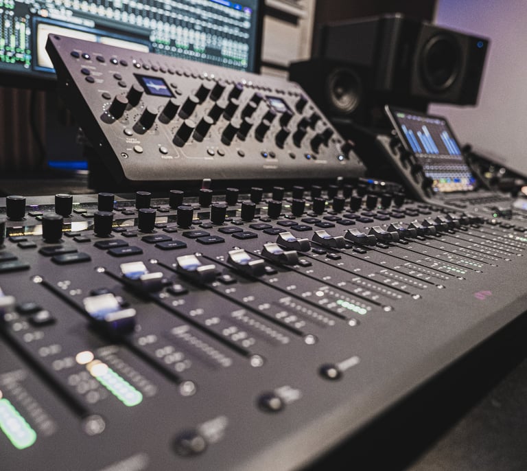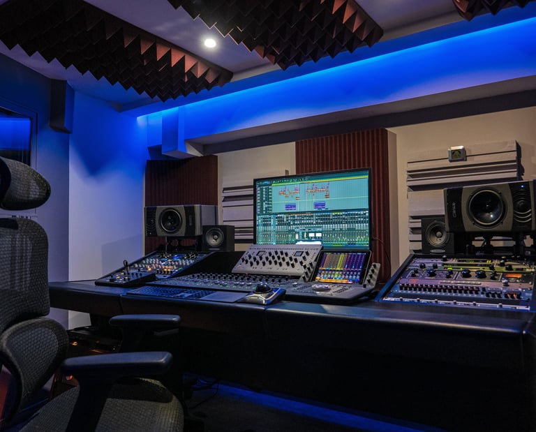 Un espace professionnel conçu pour le mixage et le mastering, alliant précision numérique et chaleur analogique.